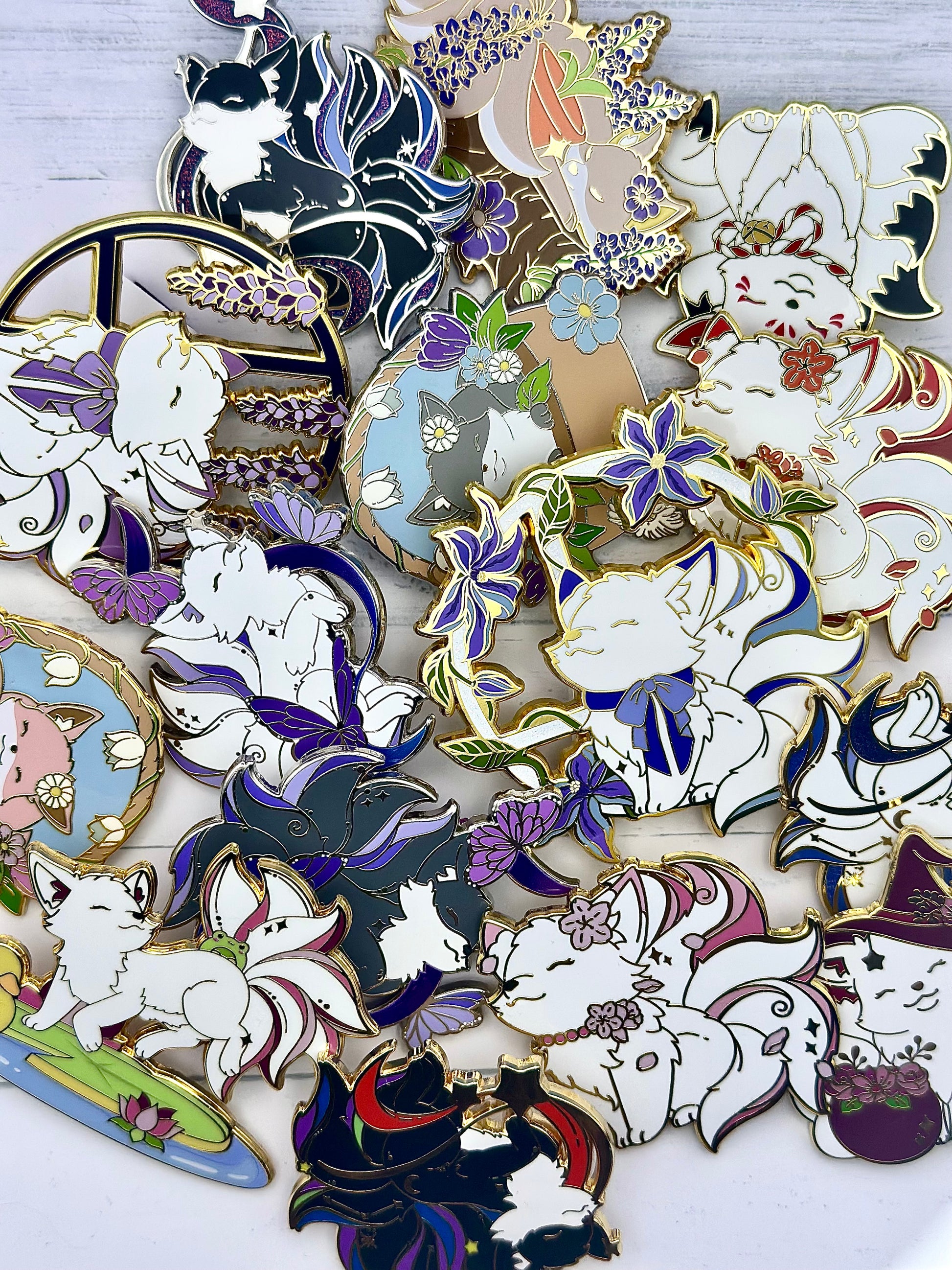 Each mystery pack includes 1 Kitsune pin from any previous project, including but not limited to: